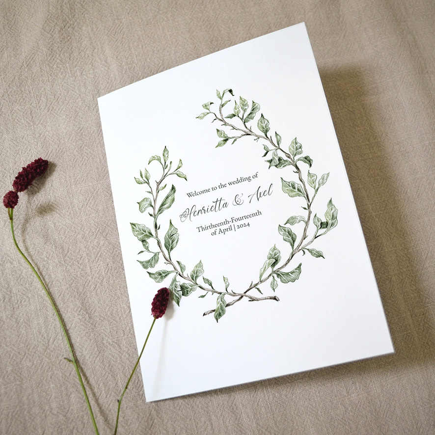 Pencil and watercolour illustration made by hand and then digitised and printed on 300 gsm cardstock. The font has a greenish grey hue that matches the leaves but you can choose the font and colour of your liking.
